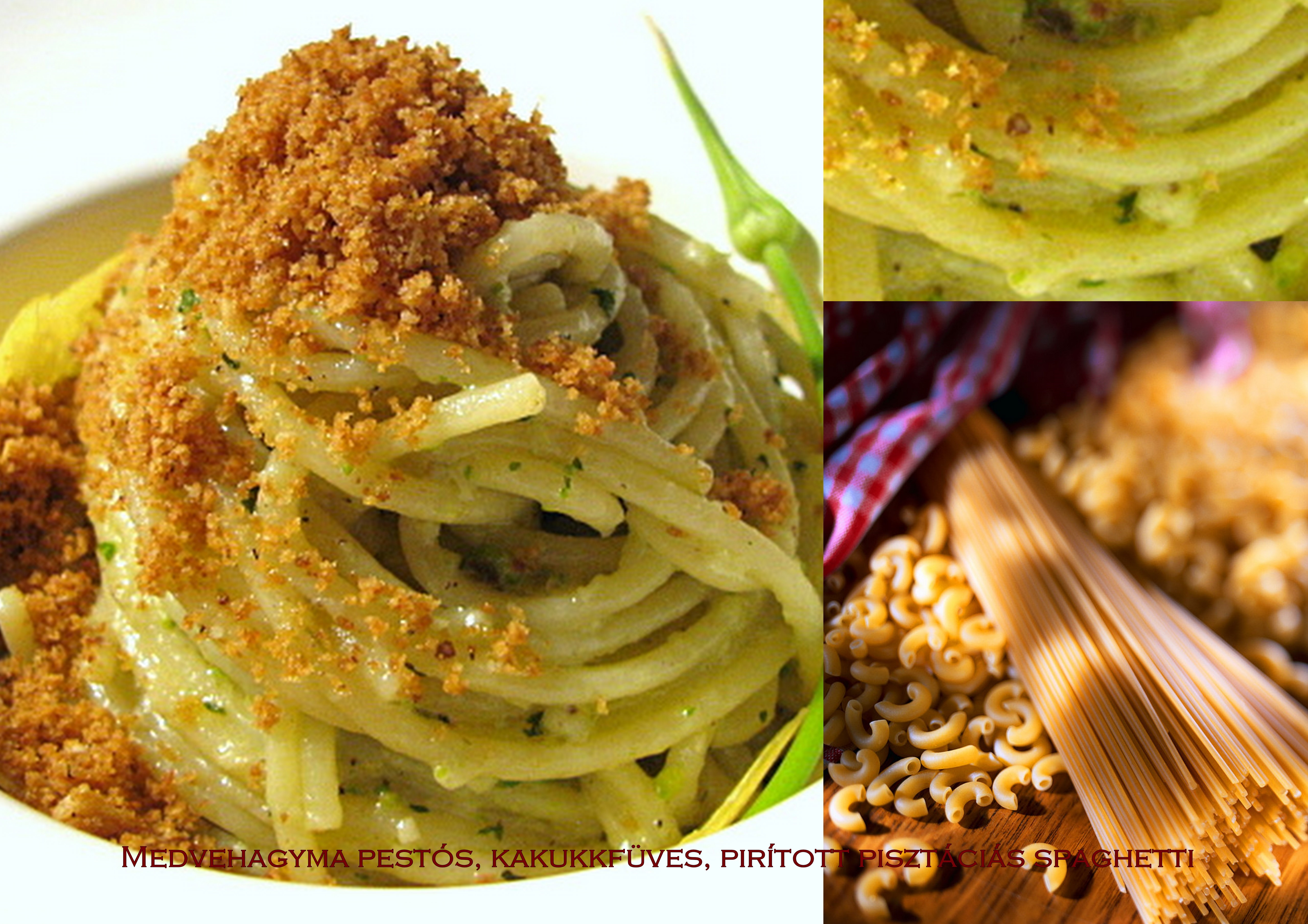 Ezen a gyors -mondjuk úgy- ebéden nincs mit ragozni. A tegnapi medvehagyma pestóhoz hozzáadtam egy leheletnyi kakukkfüvet, pirított pisztáciát és a kifőzött, szigorúan durumlisztből készült és “al dente”*-re főzött spaghettire öntöttem.