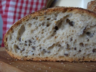 Egy nagy tálban a liszteket alaposan összekevertem minden száraz alapanyaggal, majd sima tésztává gyúrtam a többi hozzávalóval. Letakarva fél órán kereszül a meleg napon kelesztetettem majd ismét átgyúrtam és kerek cipót formáztam belőle, amit ismét kitettem napozni ameddig a sütő felmelegszik.