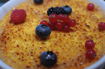Néhány darabra szórtam egy kevés kristálycukrot és flambírozó pisztollyal karamellizáltam a tetejüket.